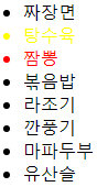 // 탕수육은 노란색, 짬뽕은 빨간색으로 변경